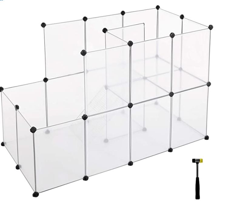 - Parc pour cochons d’Inde, avec Échelle, Enclos, Clôture modulaire, en Plastique, pour Hamsters, Lapin, Petits Animaux, Transparent LPC03W