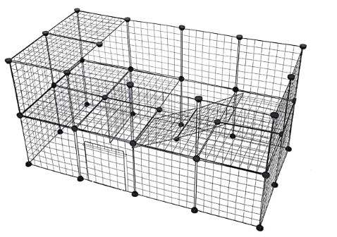 Pour cet enclos modulable, il est important de mettre un revêtement sur les grilles qui forment les étages ainsi que sur l’échelle afin que le cochon d’Inde ne se fasse pas mal aux pattes ou ne se coince les griffes dedans (Il existe,par exemple, des tapis en chanvre).