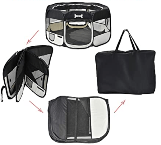 - Si vous partez avec un chiot, un parc à chiot facile à transporter.