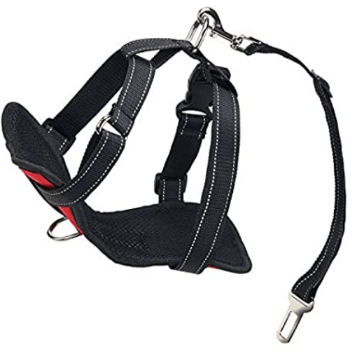 - Différents accessoires de sécurité pour les chiens en voiture, ceinture de sécurité, harnais de sécurité…