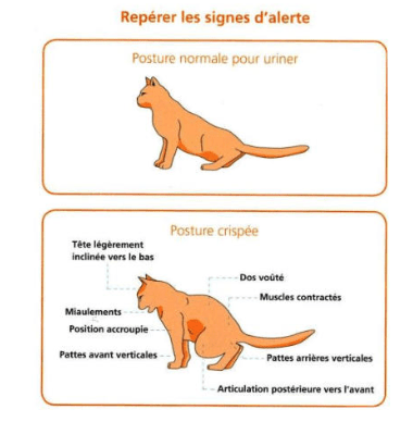 - Le chat miaule lorsqu’il urine;