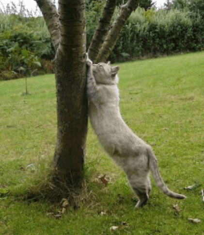 Un chat qui dispose d’un jardin griffe piquets et troncs d’arbres.