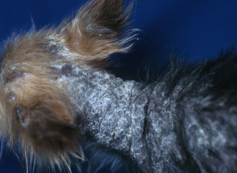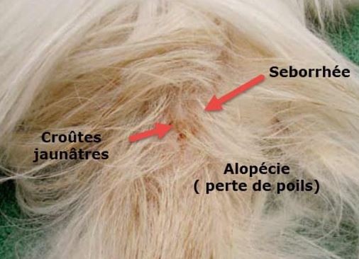Chez les chiens et chats à poils longs, la mise en évidence des lésions doit se faire à rebrousse poils.