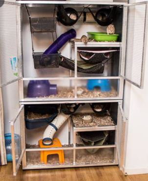 Le rat à besoin de se dépenser, de grimper, de se cacher etc, il lui faut donc un espace assez grand pour pouvoir s’amuser lors de vos abscence.