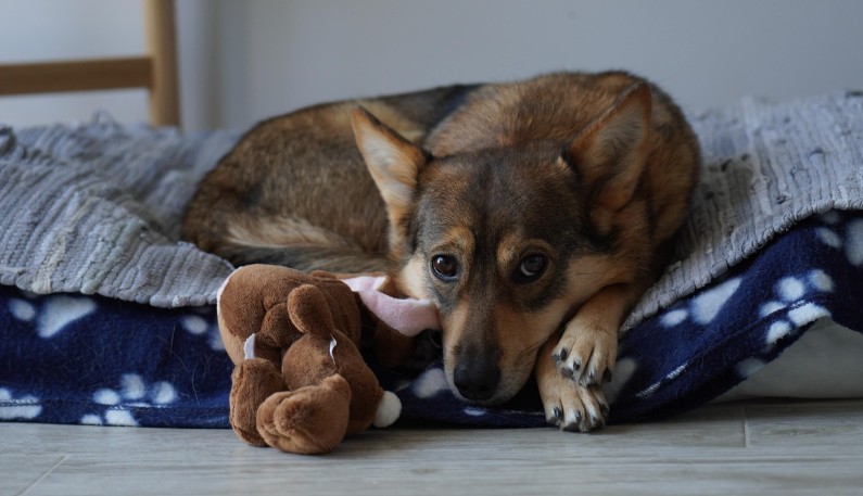 - Chien anxieux : fouille et mastication
